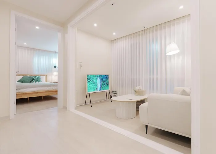Die Ferienwohnung Mint House Hapjeong verfügt über Annehmlichkeiten für Selbstversorger wie eine voll ausgestattete Küchenzeile und bietet außerdem einen Essbereich, in der die Gäste entspannt ihre Mahlzeiten einnehmen können. Die Ferienwohnung Mint House Hapjeong ist auch in nur 5 Gehminuten Entfernung von der U-Bahn-Station Hapjeong gelegen.